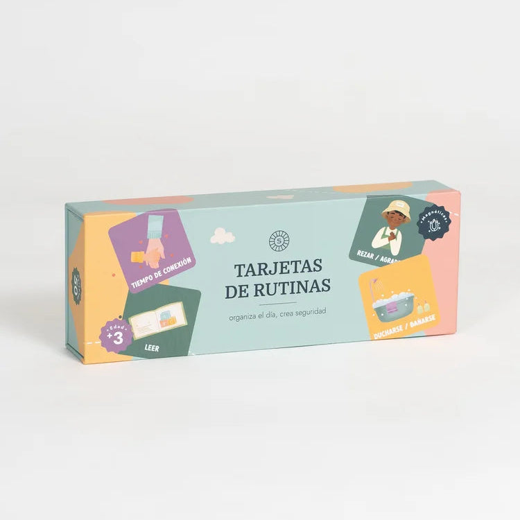 Cada tarjeta tiene una ilustración que representa una actividad cotidiana, como comer, cepillarse los dientes, jugar, dormir y muchas más. Así, los niños pueden anticipar lo que sucederá durante el día, lo cual les brindará mayor seguridad y confianza.